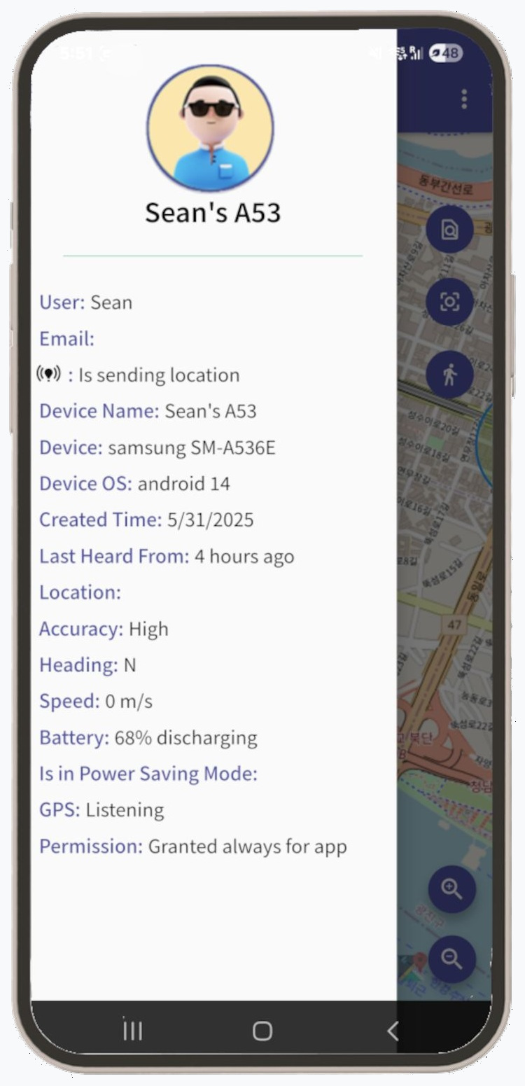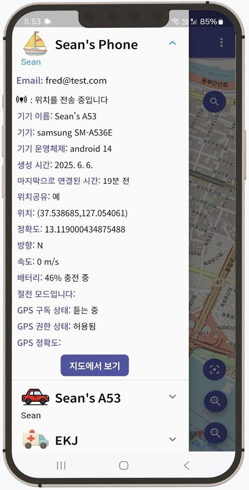 실시간 위치 및 기기 세부 정보가 포함된 지도를 볼 수 있습니다.